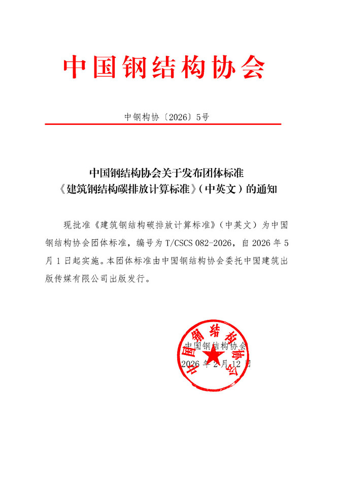 中國(guó)鋼結(jié)構(gòu)協(xié)會(huì)關(guān)于發(fā)布團(tuán)體標(biāo)準(zhǔn)《建筑鋼結(jié)構(gòu)碳排放計(jì)算標(biāo)準(zhǔn)》的通知