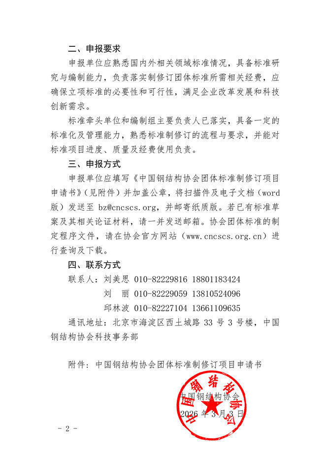 關(guān)于征集中國鋼結(jié)構(gòu)協(xié)會團體標準制修訂項目的通知